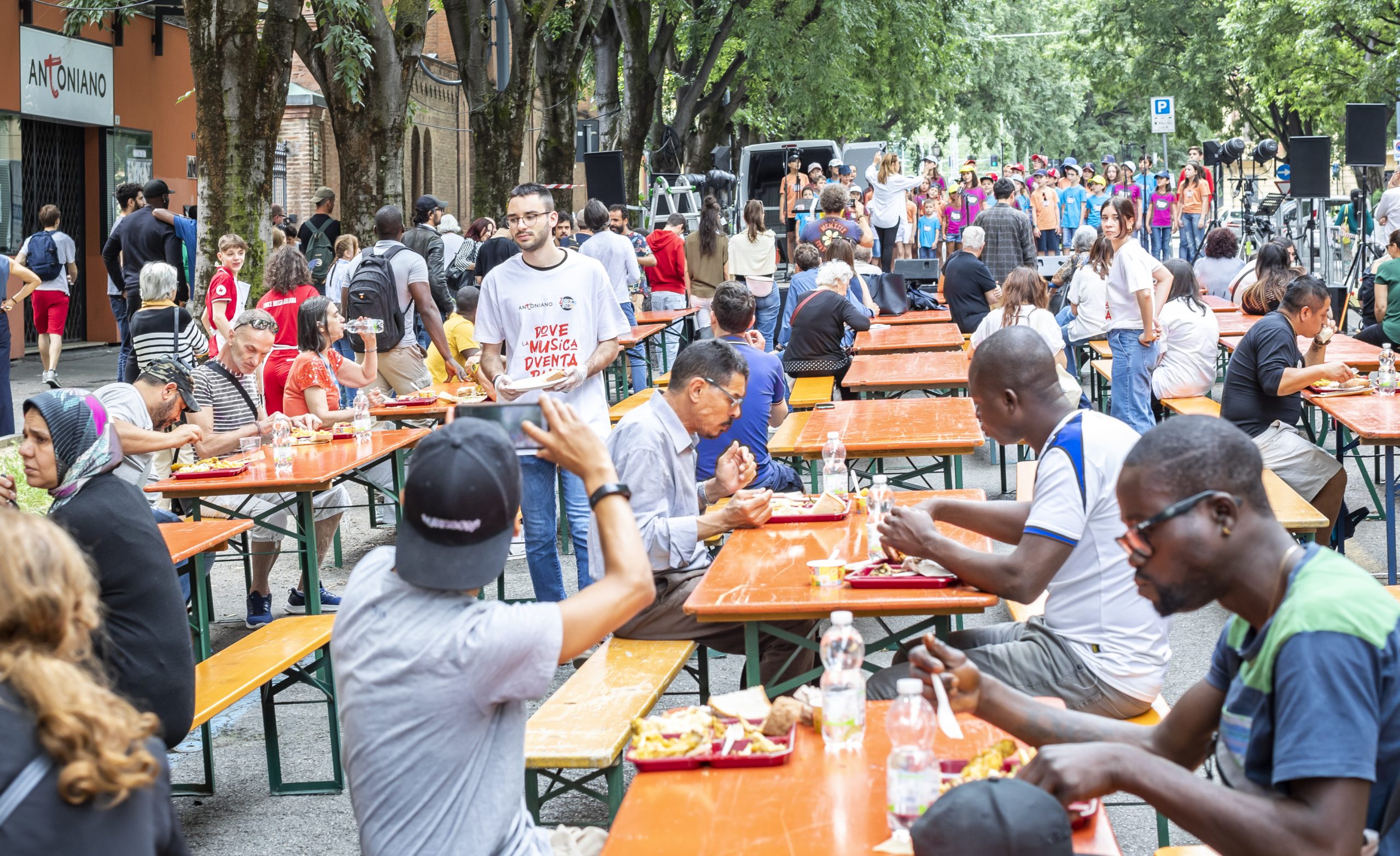 A partire dal pranzo, verranno allestiti 100 tavoli in strada per gustare il pasto con il finger food degli chef di Antoniano e promuovere la condivisione del pasto tra tutti e tutte. La festa di strada sarà anche cultura e musica: nel corso del pomeriggio, il palco di via Guinizelli ospiterà le attività di arte e musica che ogni giorno risuonano tra le mura di Antoniano, grazie all’esperienza dei laboratori migranti e agli allievi dei corsi di musica, danza e teatro di Antoniano.